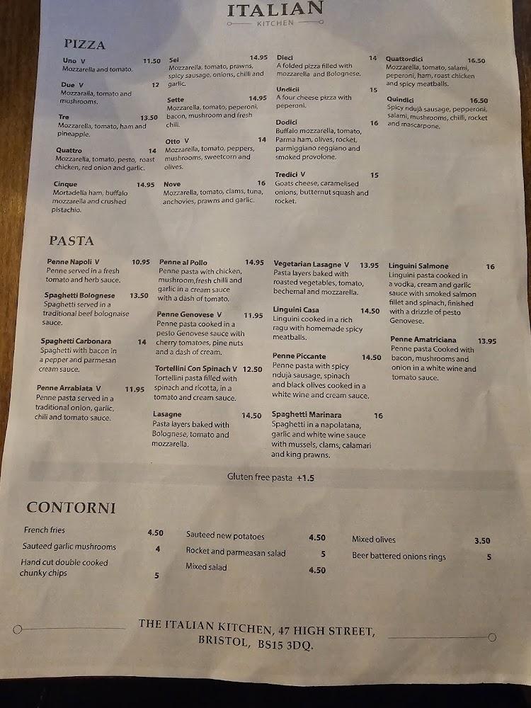 Located on the bustling High Street in Hanham, The Italian Kitchen stands out as a charming destination for Italian fare. The neighborhood boasts a blend of historical landmarks and modern conveniences, providing a lively atmosphere throughout the day. Accessible via a wheelchair-friendly parking lot, the restaurant welcomes all to enjoy its delightful offerings. The Italian Kitchen is celebrated for its seamless service, making it the go-to place for family gatherings, quick lunches, or relaxed dinners. Sure, it can get a bit noisy during peak hours, especially on Sundays, but that only adds to its vibrant atmosphere. The surrounding area benefits from plenty of free street parking, perfect for those driving in. Nearby parks and shops also make it easy to enjoy a full outing—a walk, shop, and a meal, all in one go! For anyone in the Bristol area, this establishment captures the essence of community dining.